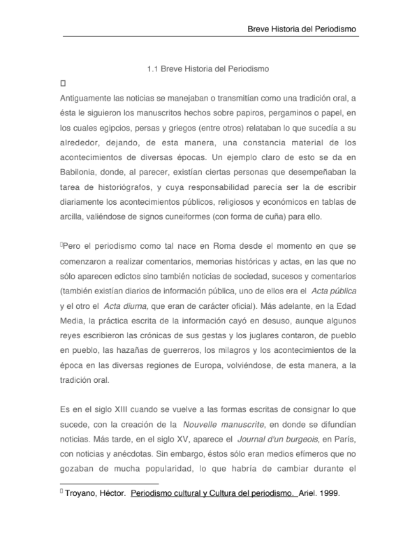 Breve Historia del Periodismo